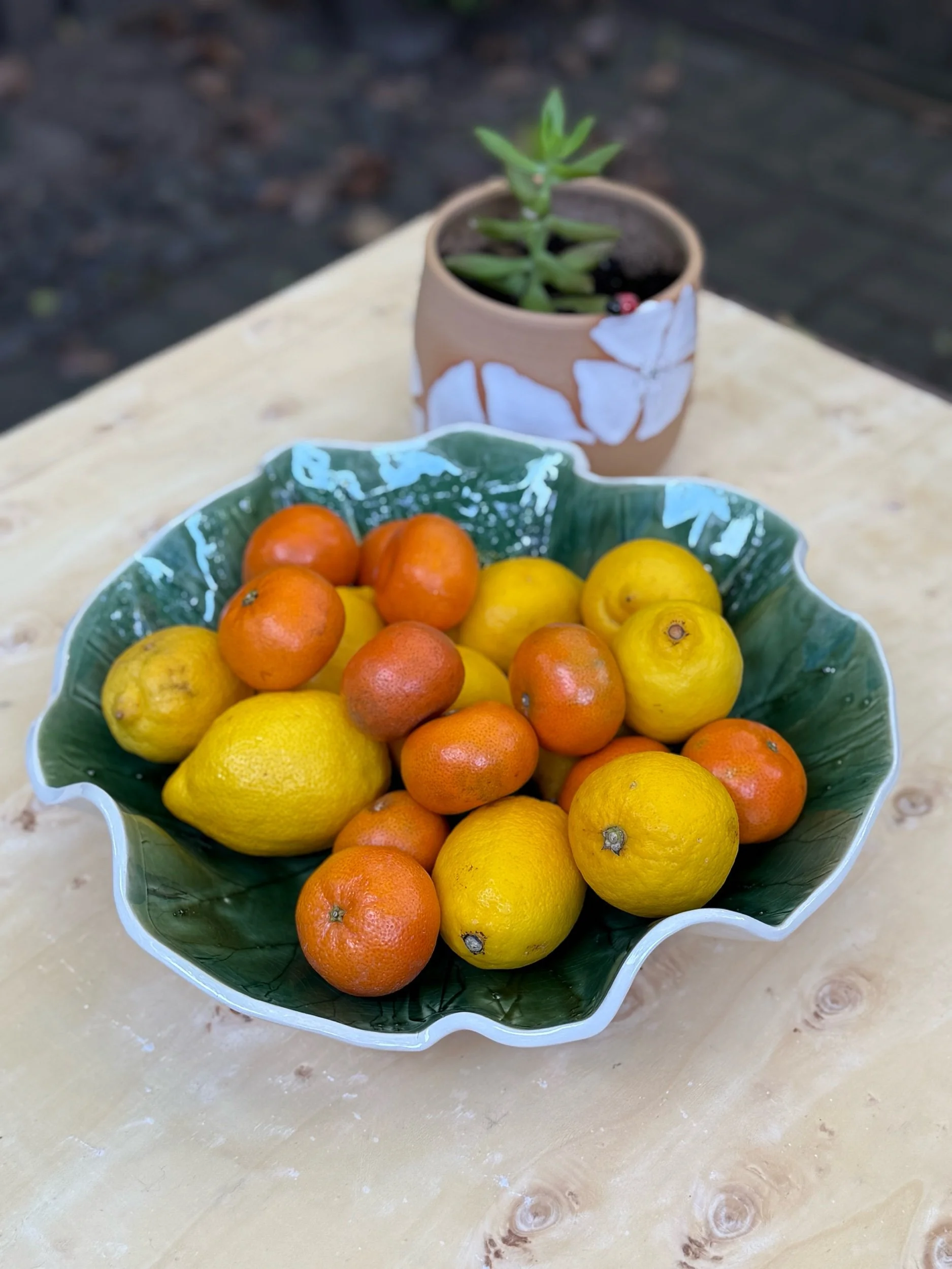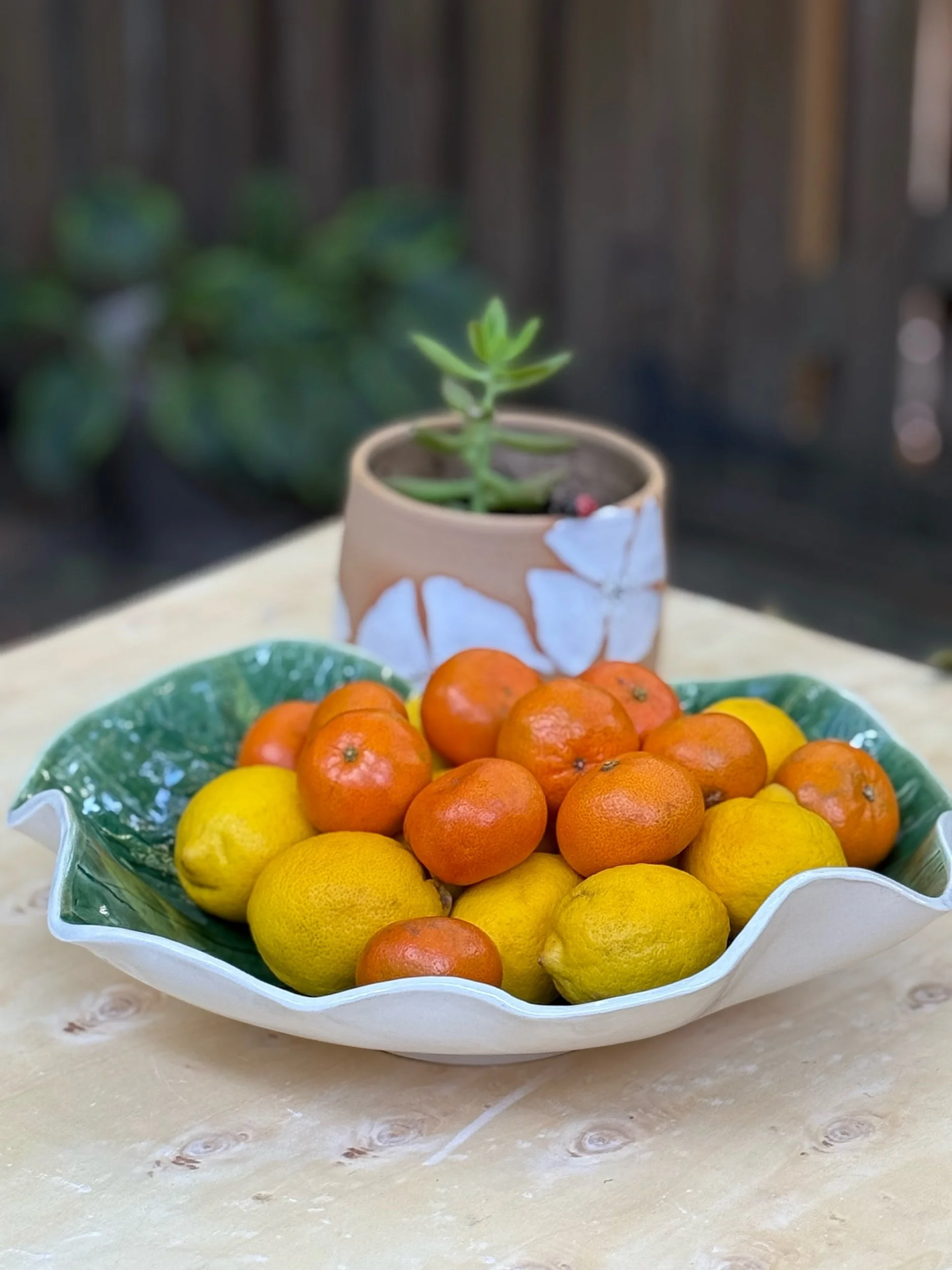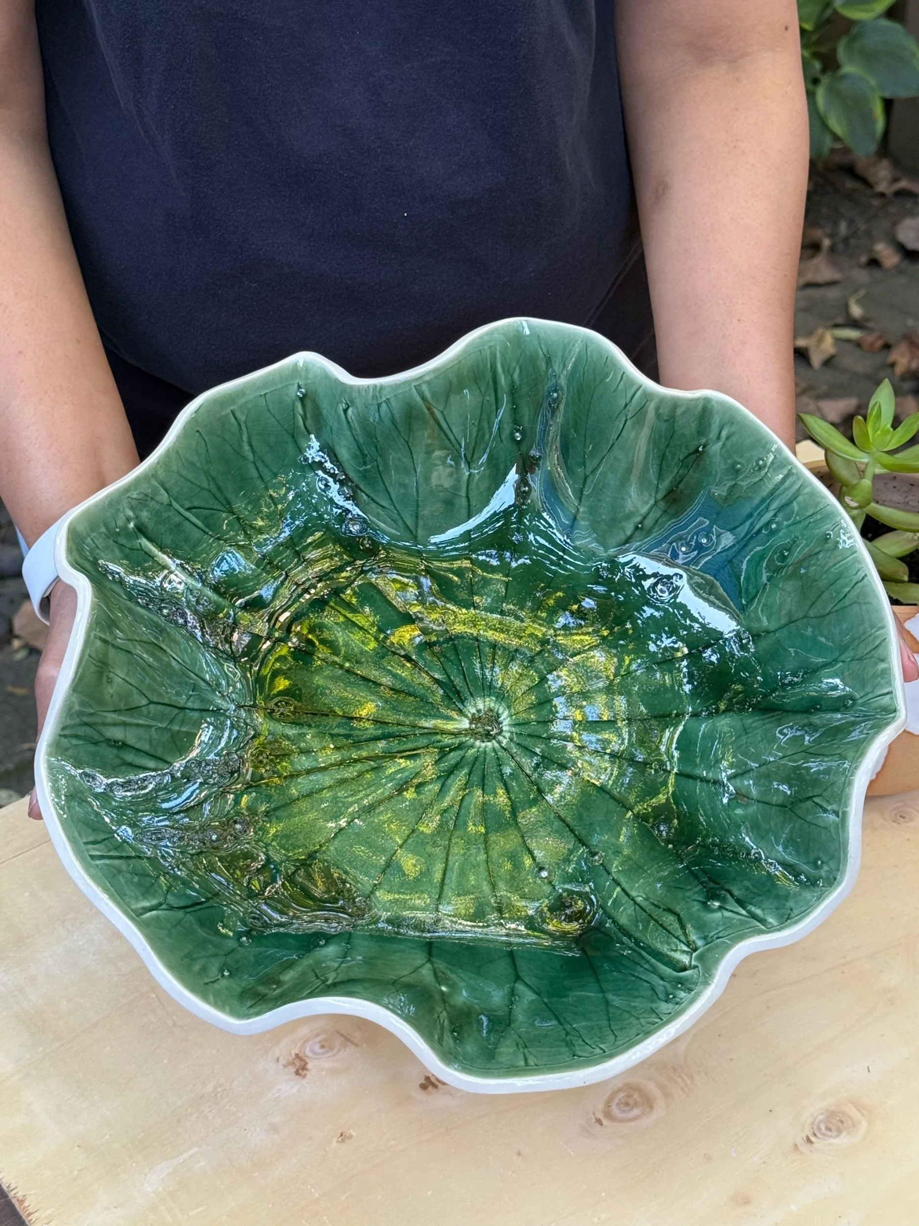 Large bowl ideal as a centerpiece. Its ample size makes it perfect for holding fruit or serving a salad, combining functionality with elegant design to enhance any table setting.