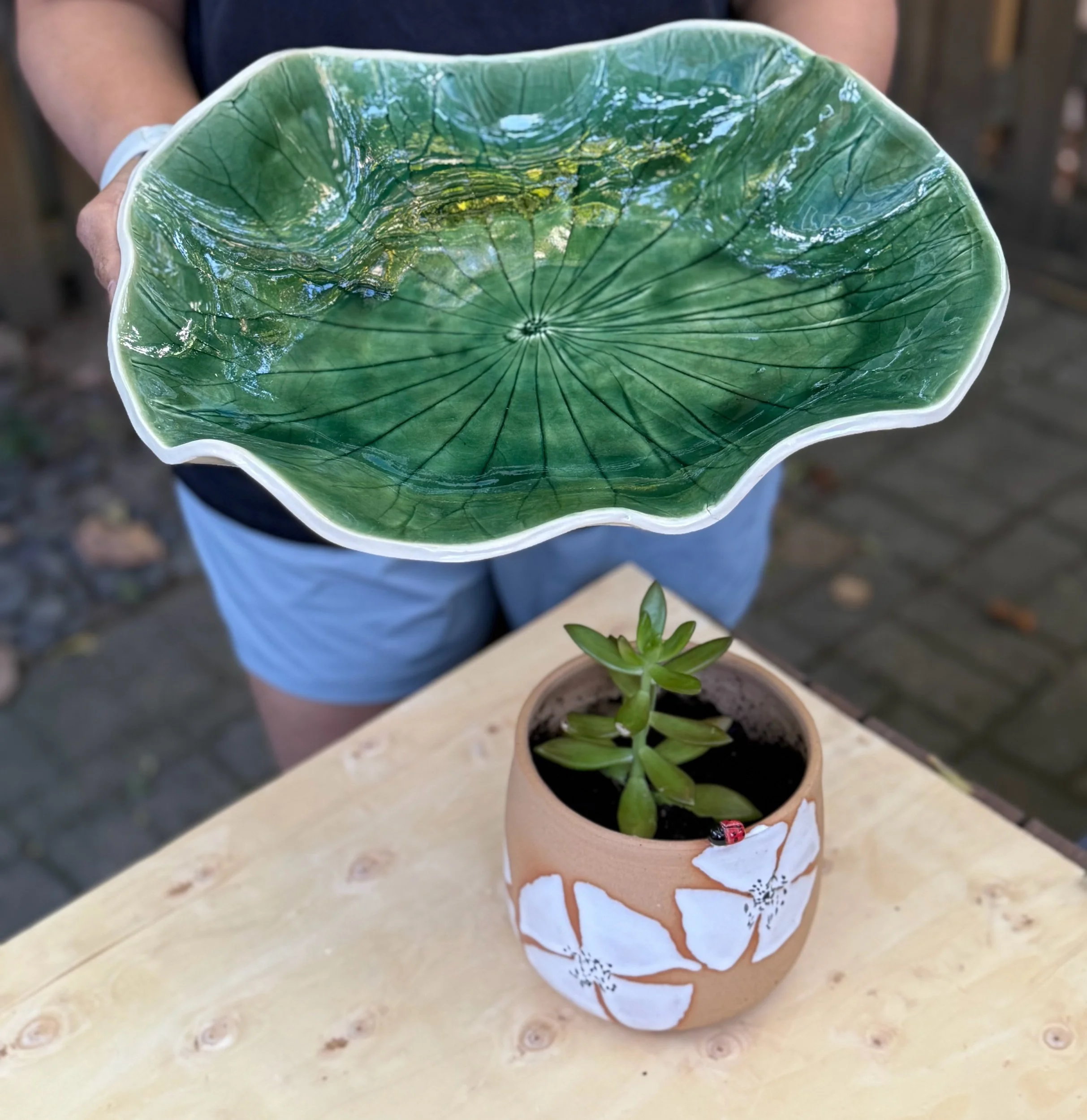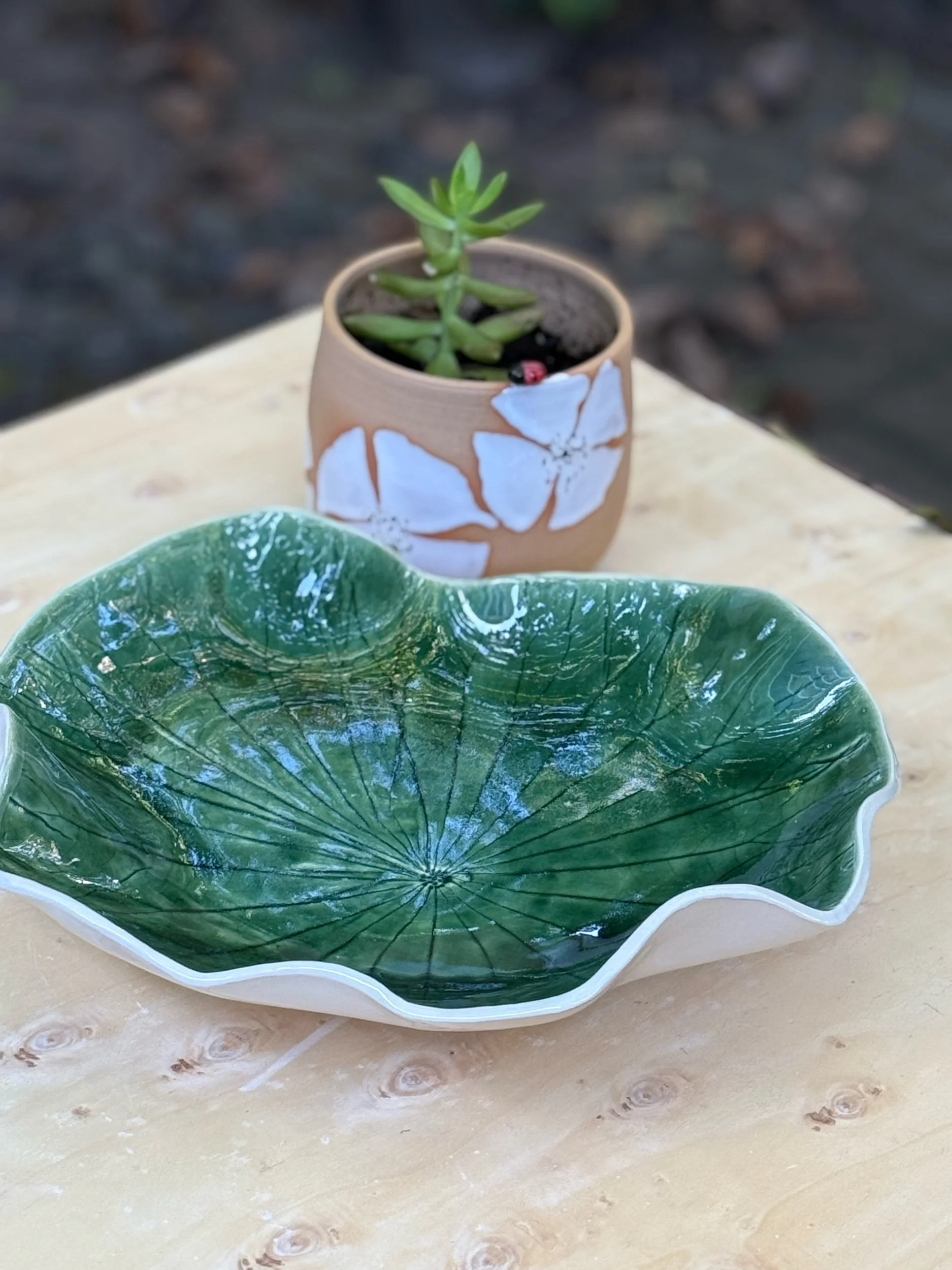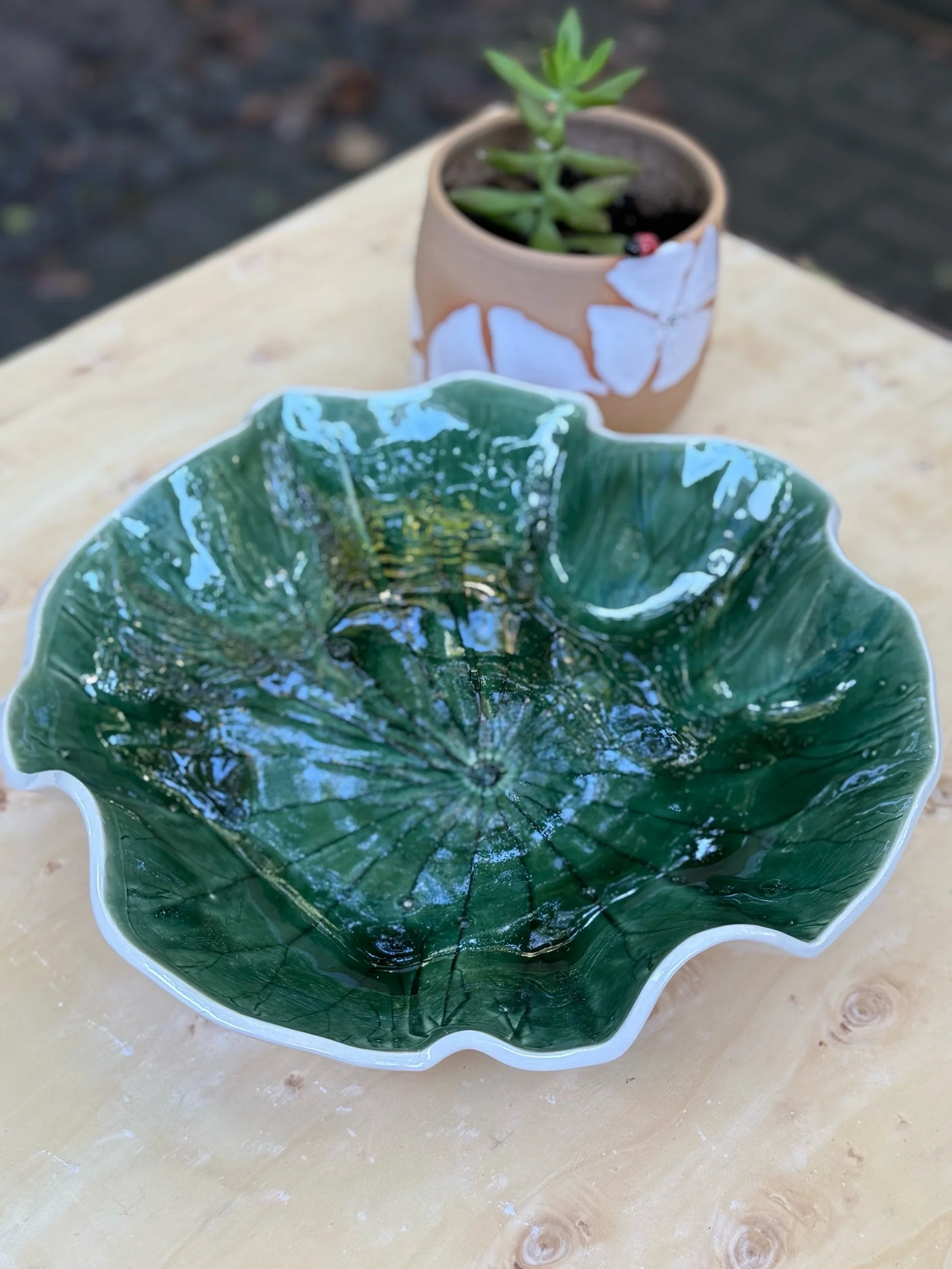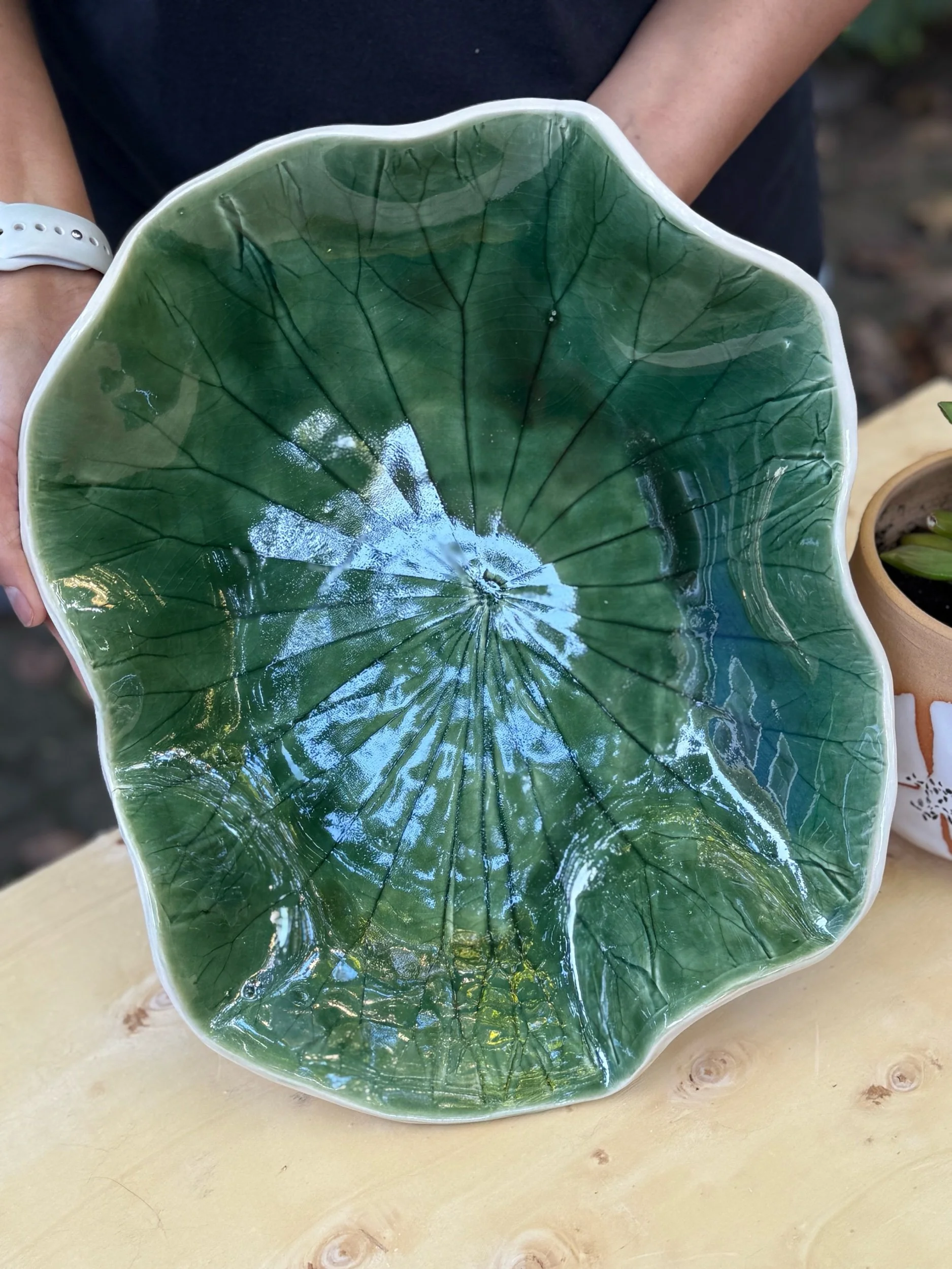 Large bowl ideal as a centerpiece. Its ample size makes it perfect for holding fruit or serving a salad, combining functionality with elegant design to enhance any table setting.