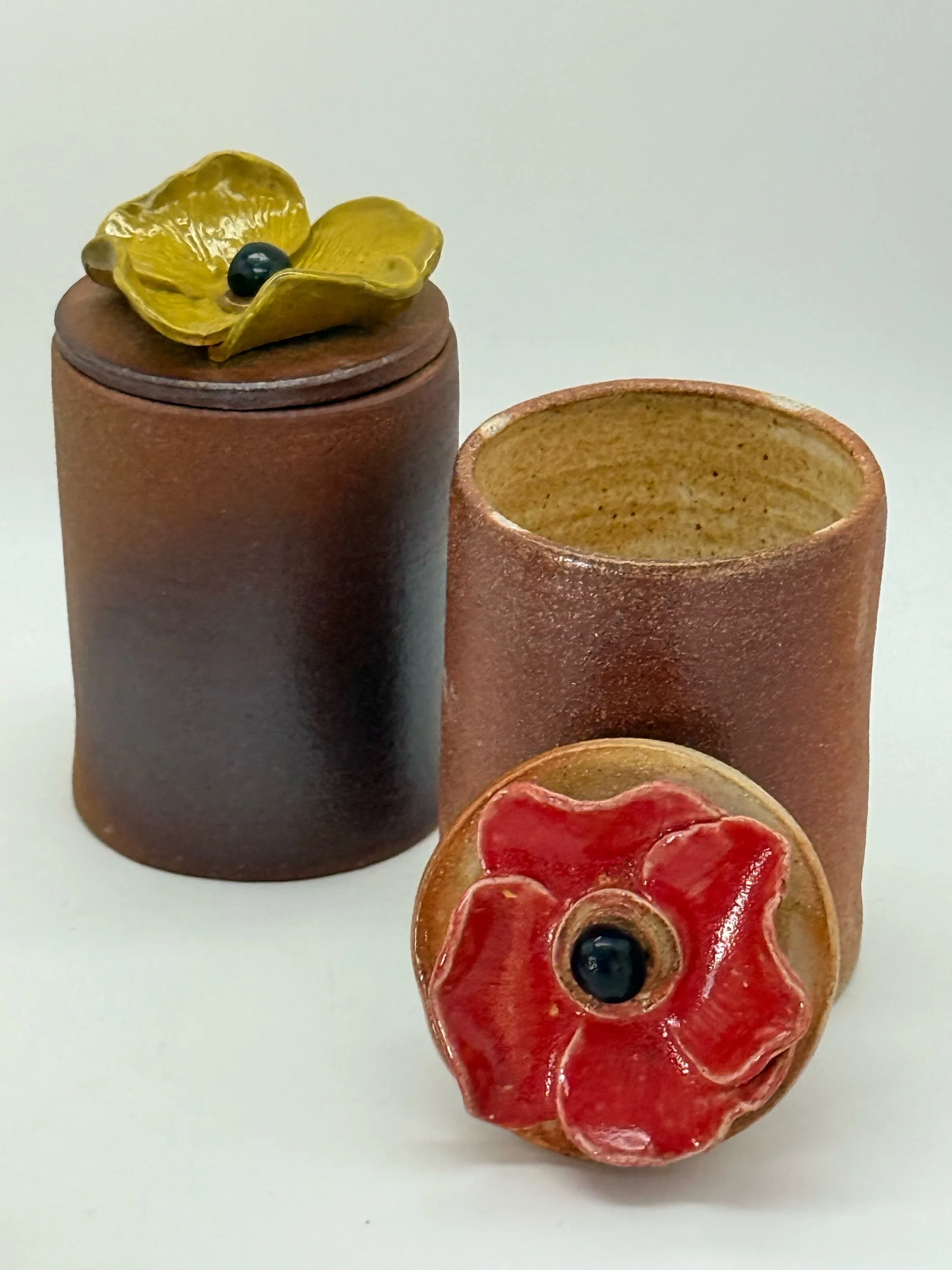 Brighten your space with these wood fired colorful jars. Perfect for storing spices, tea, treats, small trinkets, or as decorative accents, these jars combine functionality with style. Their compact size makes them ideal for kitchen counters, shelves, or desks, bringing a pop of color wherever they are placed. Durable and easy to clean, these jars are a versatile addition to your home or office.