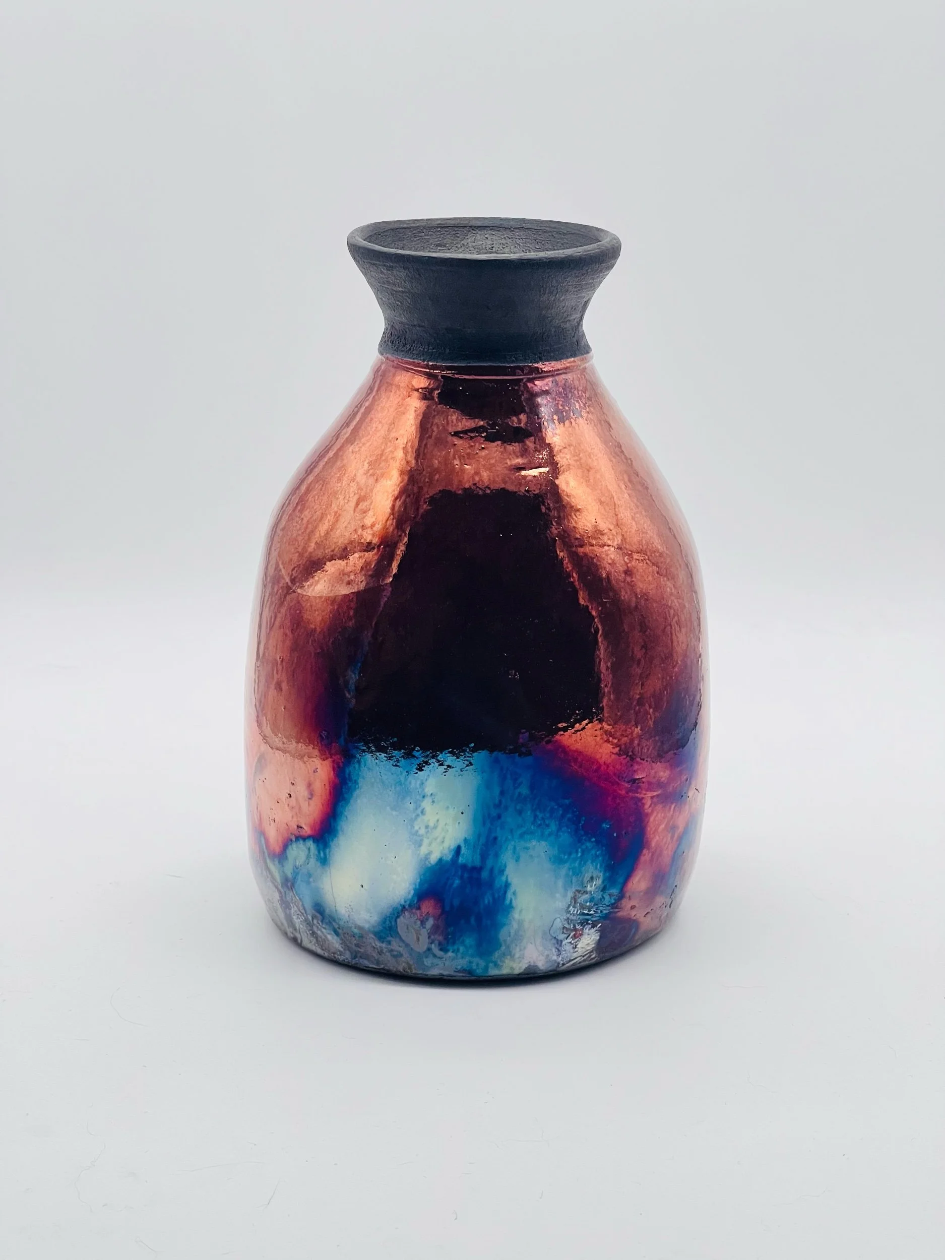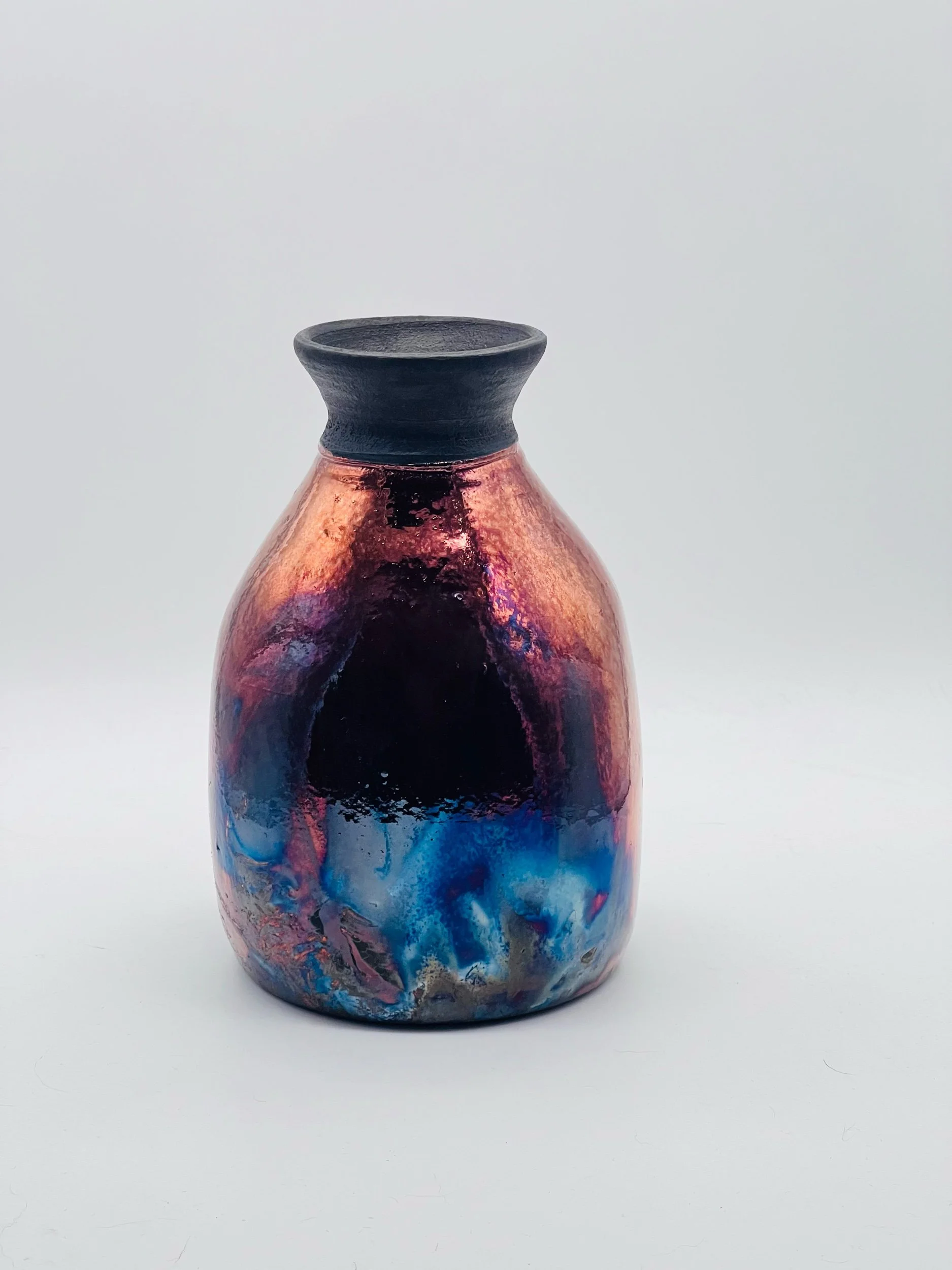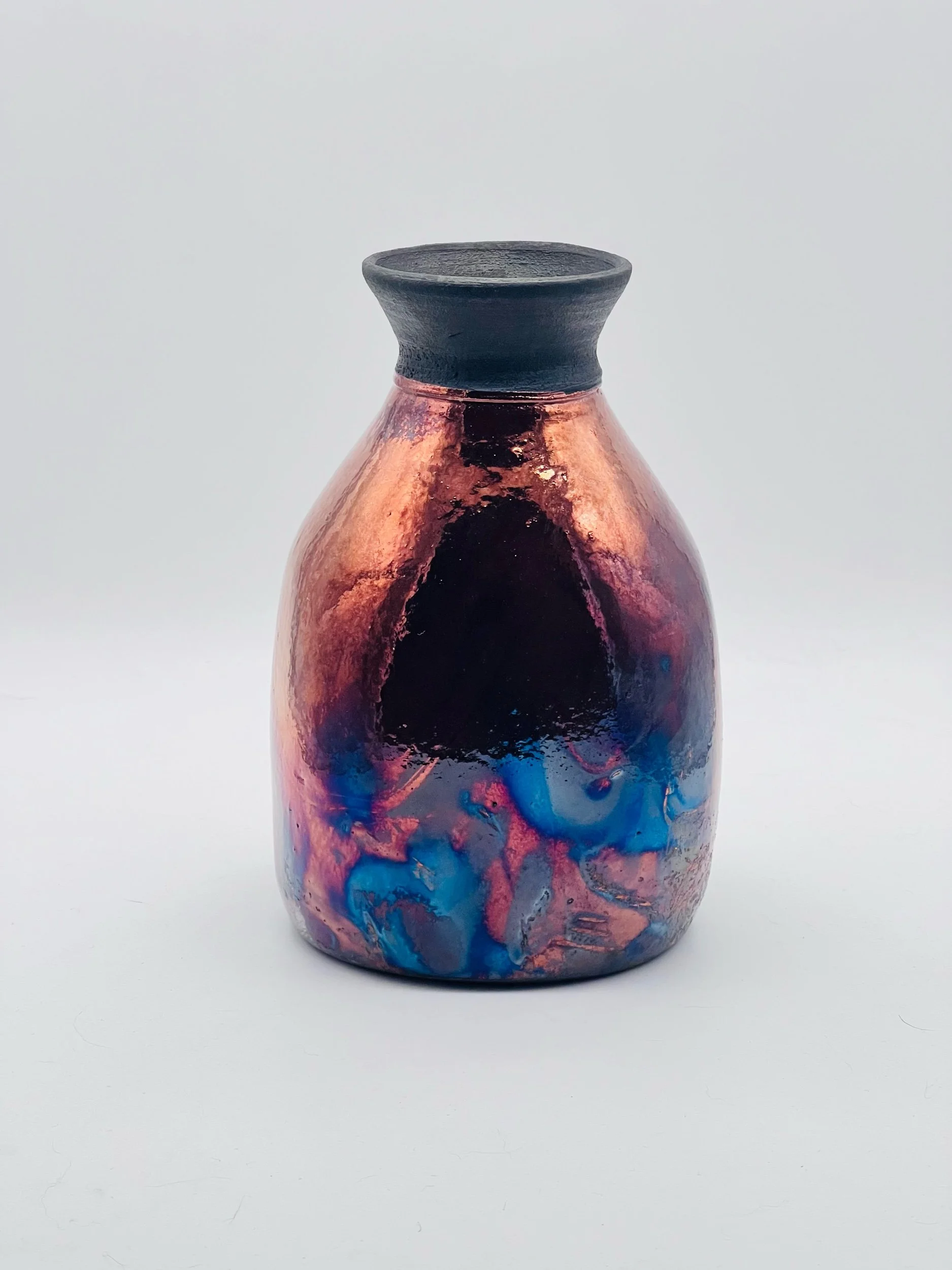 CARE: Raku is a low fire process and thus not waterproof. While beautiful, Raku ware is decorative rather than functional, and it will not hold water.