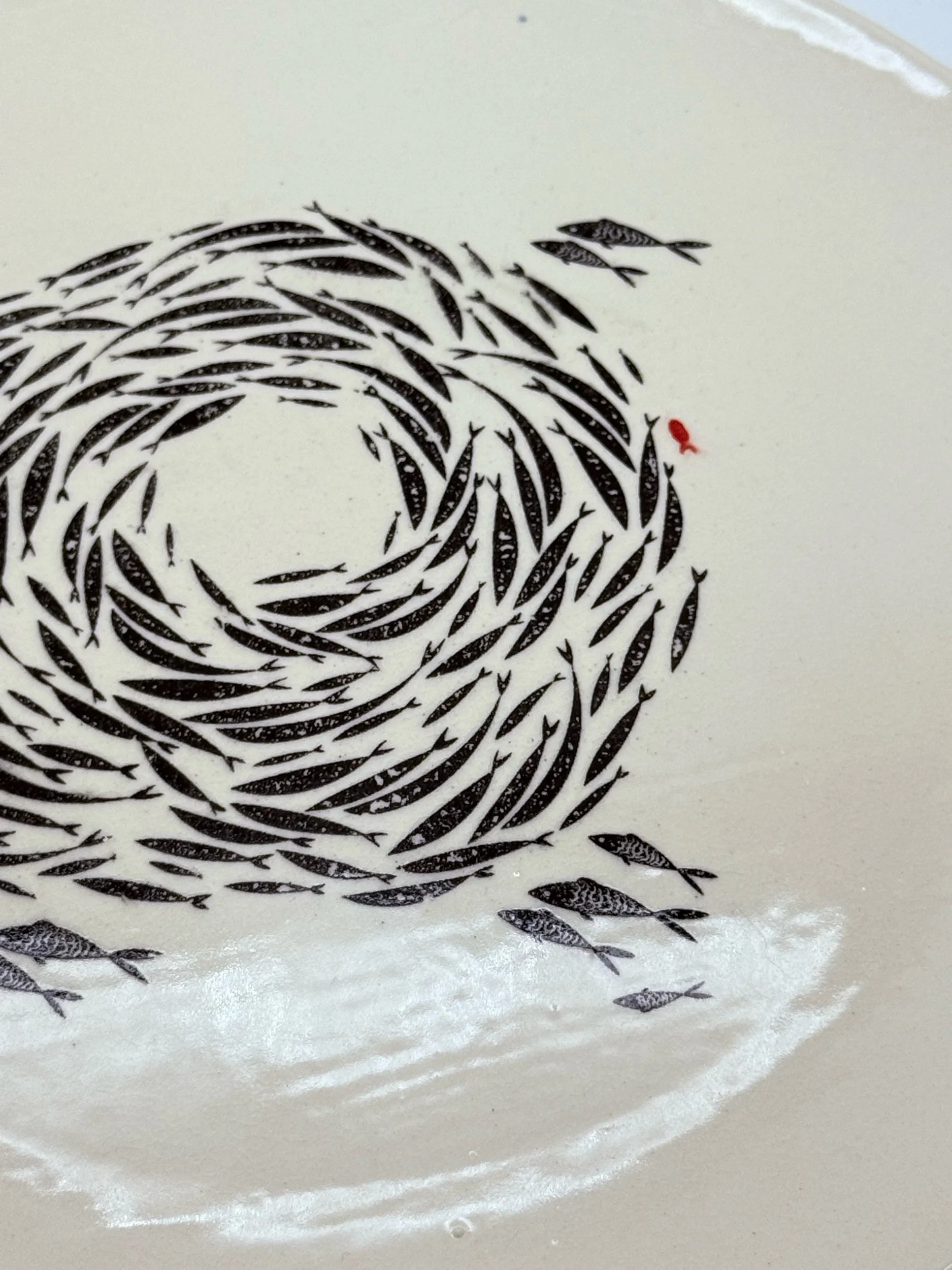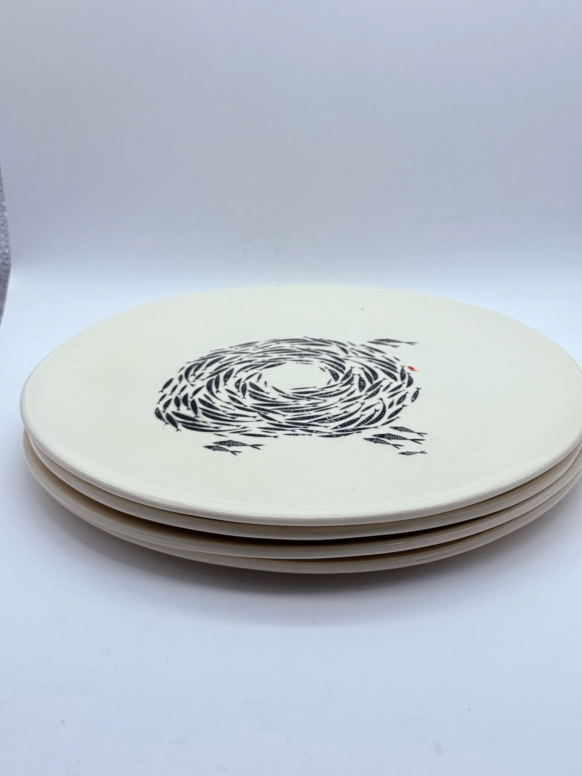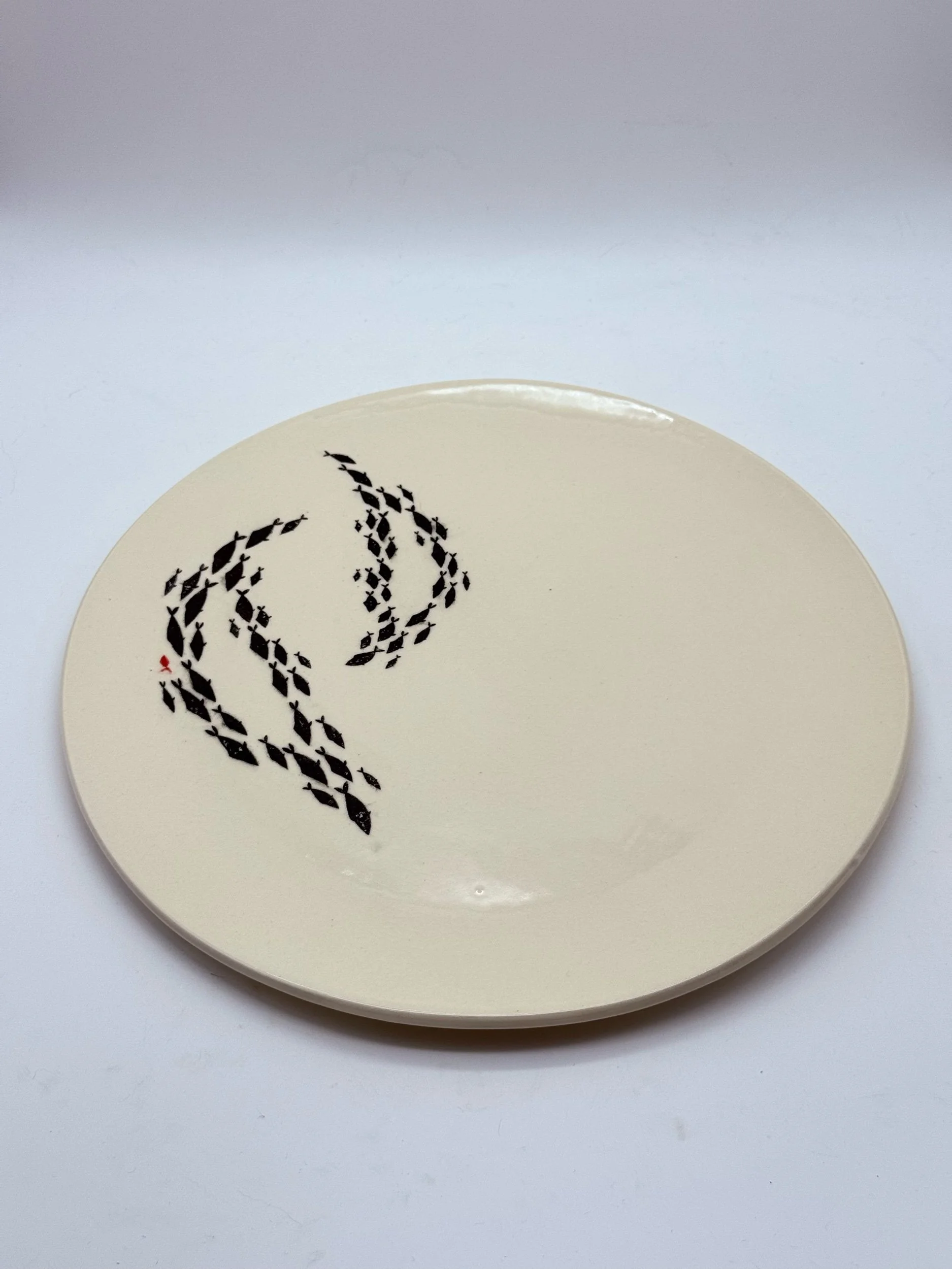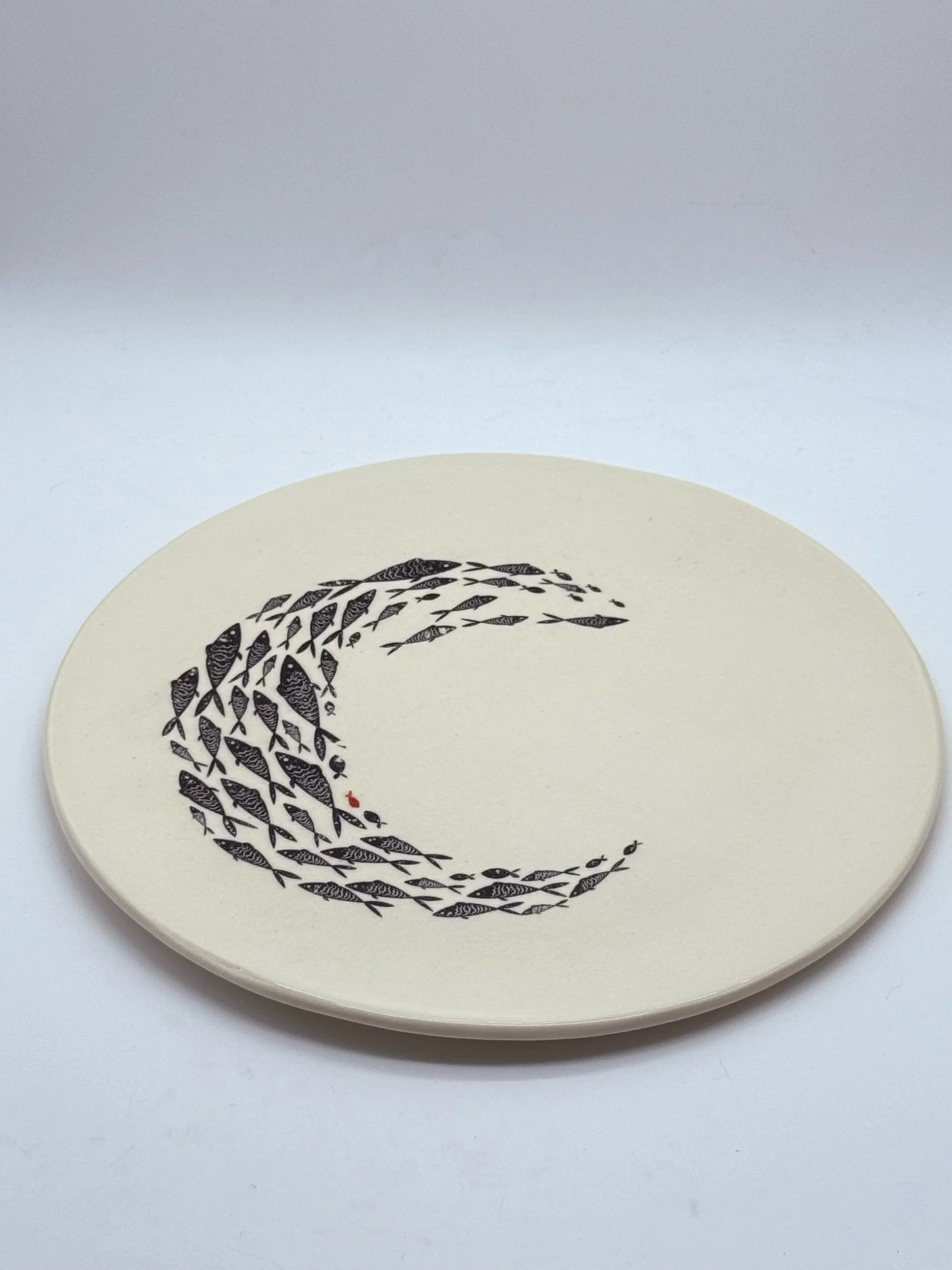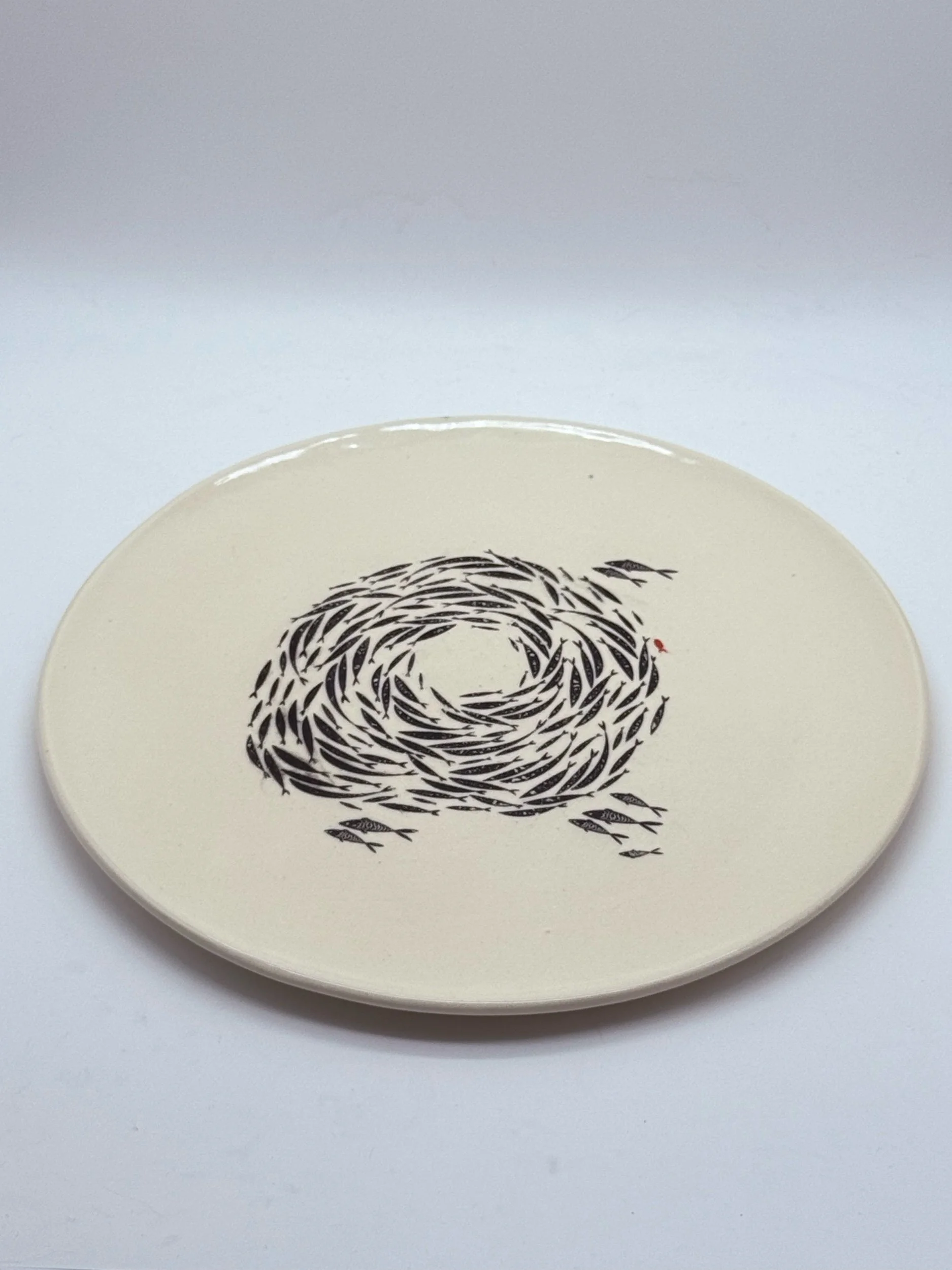Bring a touch of whimsy to your table with these handcrafted salad plates, featuring a lively fish design. Look closely and you’ll spot a hand-painted red fish swimming against the current—a playful symbol of individuality and going against the norm. Each plate is carefully crafted and decorated, blending function with charm. The fish design adds a whimsical, aquatic flair—perfect for serving fresh greens or main meals. Durable yet elegant, these plates are ideal for everyday use or for creating a distinctive coastal-inspired table setting.